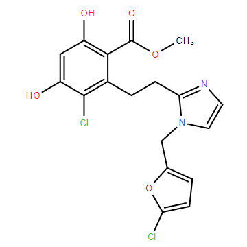 Chemical Name: | Methyl 3-Chloro-2-(2-(1-((5-chlorofuran-2-yl)methyl)-1H-imidazol-2-yl)ethyl)-4,6-dihydroxybenzoate |