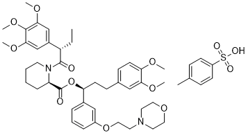 Synonyms: | Shield-1 Tosylate;(S)-(R)-3-(3,4-Dimethoxyphenyl)-1-(3-(2-morpholinoethoxy)phenyl)propyl 1-((S)-2-(3,4,5-trimethoxyphenyl)butanoyl)piperidine-2-carboxylate Tosylate;(1R)-3-(3,4-Dimethoxyphenyl)-1-[3-[2-(4-morpholinyl)ethoxy]phenyl]propyl (2S)-1-[(2S)-1-oxo-2-(3,4,5-trimethoxyphenyl)butyl]-2-piperidinecarboxylate (ACI);Shield 1;Shield-1 |