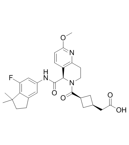 SMILES: C(O)(=O)C[C@@H]1C[C@H](C(N2CCC3=C([C@@H]2C(=O)NC2C=C(F)C4=C(C=2)CCC4(C)C)C=CC(OC)=N3)=O)C1