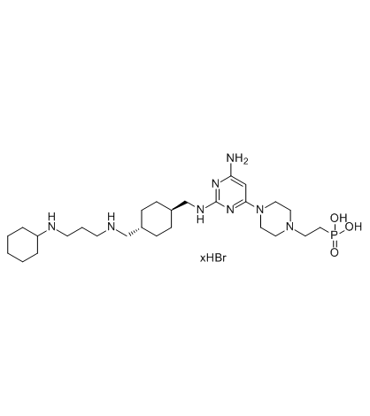 Chemical Name: (2-(4-(6-amino-2-((((1r,4r)-4-(((3-(cyclohexylamino)propyl)amino)methyl)cyclohexyl)methyl)amino)pyrimidin-4-yl)piperazin-1-yl)ethyl)phosphonic acid trihydrobromide trihydrate