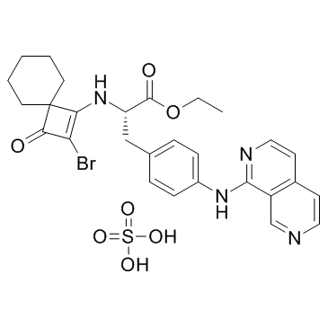 SMILES: | CCOC([C@@H](NC1C2(CCCCC2)C(=O)C=1Br)CC1=CC=C(NC2C3=C(C=CN=C3)C=CN=2)C=C1)=O.OS(=O)(=O)O |