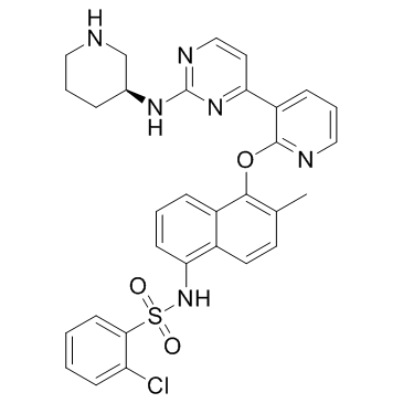 SMILES: | CC1=C(C2=C(C=C1)C(=CC=C2)NS(=O)(=O)C3=CC=CC=C3Cl)OC4=C(C=CC=N4)C5=NC(=NC=C5)N[C@H]6CCCNC6 |