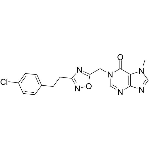 Chemical Name: | 1-((3-(4-Chlorophenethyl)-1,2,4-oxadiazol-5-yl)methyl)-7-methyl-1H-purin-6(7H)-one |