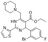 SMILES: | BrC1C=C(C=CC=1C1C(C(=O)OCC)=C(CN2CCOCC2)NC(C2=NC=CS2)=N1)F |