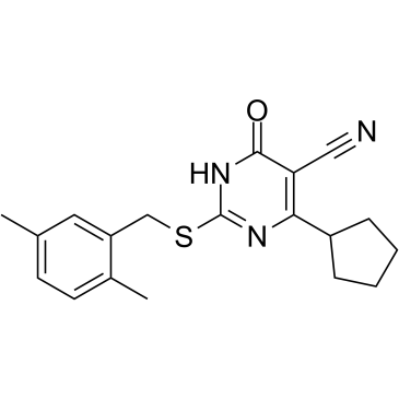 Chemical Name: | 4-cyclopentyl-2-((2,5-dimethylbenzyl)thio)-6-oxo-1,6-dihydropyrimidine-5-carbonitrile |