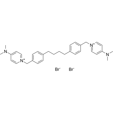 SMILES: | C(C1=CC=C(C[NH0+]2C=CC(N(C)C)=CC=2)C=C1)CCCC1=CC=C(C[NH0+]2C=CC(N(C)C)=CC=2)C=C1.[BrH0-].[BrH0-] |