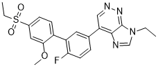 SMILES: | S(CC)(C1C=CC(=C(C=1)OC)C1C(=CC=C(C=1)C1C=NN=C2C=1N=CN2CC)F)(=O)=O |