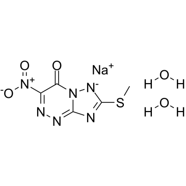 SMILES: | O=C1C([N+](=O)[O-])=NN=C2N=C(SC)[N-]N12.[H]O[H].[H]O[H].[Na+] |