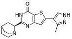 SMILES: | S1C(C2C=NNC=2C)=CC2=C1C(NC([C@@H]1CC3CCN1CC3)=N2)=O |