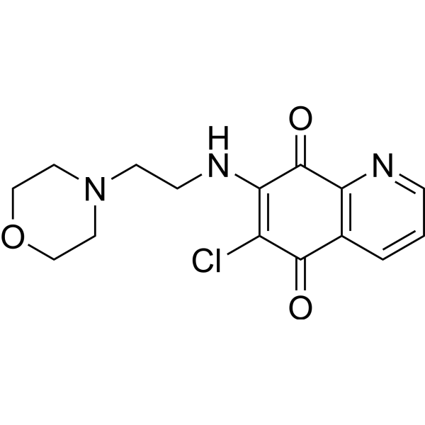 Synonyms: | NSC 663284;5,8-Quinolinedione, 6-chloro-7-[[2-(4-morpholinyl)ethyl]amino]-;6-Chloro-7-{[2-(morpholin-4-yl)ethyl]amino}quinoline-5,8-dione;6-chloro-7-(2-morpholin-4-ylethylamino)quinoline-5,8-dione;NSC 663284 (DA3003-1,Cdc25 Phosphatase Inhibitor II);6-Chloro-7-(2-morpholin-4-yl-ethylamino)quinoline-5,8-dione;6-Chloro-7-[[2-(4-Morpholinyl)ethyl]aMino]-5,8-quinolinedione;DA3003-1;DA-3003-1;G13464;6-Chloro-7-((2-morpholinoethyl)amino)quinoline-5,8-dione;NCGC00092289-01;CDC25 Phosphatase Inhibitor II, NSC 663284;7-N-(Aminoethyl-4-morpholino)-6-chloro-5,8-quinolinedione;6-chloro-7-{[2-(morpholin-4-yl)ethyl]amino}quinoline-5,8-dione;SMR002530674;CS-7519;383907-43-5;6-chloro-7-[2-(4-morpholinyl)ethylamino]quinoline-5,8-dione;SPS8I1;HMS3676L16;NCGC00092289-02;EX-A8020;NSC 663284, >=98% (HPLC), solid;6-Chloro-7-[[2-(4-morpholinyl)ethyl]amino]-5,8-quinolinedione;6-chloro-7-{[2-(morpholin-4-yl)ethyl]amino}-5,8-dihydroquinoline-5,8-dione;NSC 663284?;NSC-663284;DS-017054;BCP16027;HMS3268K22;NSC663284;SCHEMBL2556224;MS-24764;HY-100034;SDCCGSBI-0654266.P001;Q27163848;MFCD08276924;HMS3412L16;DTXSID50327512;AKOS024456823;CY8W2F69MW;BRD-K03109492-001-02-2;DA 3003-1;DA 3003-01;DA-3003-01;BDBM420306;CHEBI:92053;5,8-QUINOLINEDIONE, 6-CHLORO-7-((2-(4-MORPHOLINYL)ETHYL)AMINO)-;5,6-chloro-7-[[2-(4-morpholinyl)ethyl]amino]-;MLS006010693;NCI60_021732;BRD-K03109492-001-01-4;UNII-CY8W2F69MW |