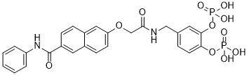 Synonyms: | Stafib-1;4-((2-((6-(Phenylcarbamoyl) naphthalen-2-yl)oxy) acetamido)methyl)-1,2-phenylene bis(dihydrogen phosphate);BDBM50267892 |