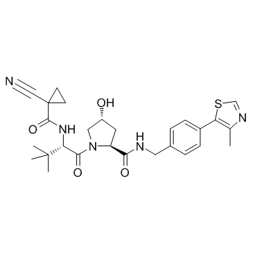 Chemical Name: | (2S,4R)-1-((S)-2-(1-Cyanocyclopropanecarboxamido)-3,3-dimethylbutanoyl)-4-hydroxy-N-(4-(4-methylthiazol-5-yl)benzyl)pyrrolidine-2-carboxamide |