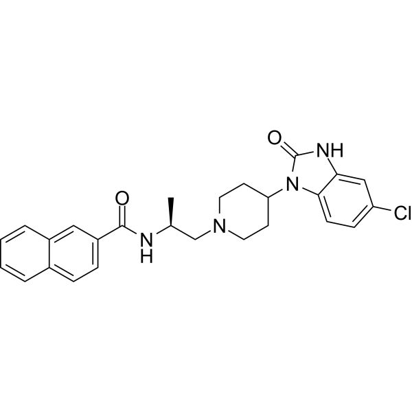 SMILES: | ClC1C=CC2=C(C=1)NC(N2C1CCN(C[C@H](C)NC(C2C=CC3C=CC=CC=3C=2)=O)CC1)=O |