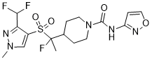 Chemical Name: | 4-{(1R)-1-[3-(difluoromethyl)-1-methyl-1H-pyrazole-4-sulfonyl]-1-fluoroethyl}-N-(1,2-oxazol-3-yl)piperidine-1-carboxamide |
