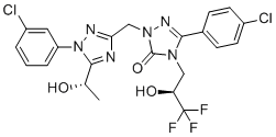 SMILES: | ClC1C=CC(=CC=1)C1=NN(CC2=NN(C3C=CC=C(C=3)Cl)C([C@H](C)O)=N2)C(N1C[C@@H](C(F)(F)F)O)=O |
