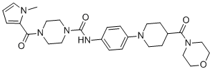 Chemical Name: | 4-(1-methyl-1H-pyrrole-2-carbonyl)-N-{4-[4-(morpholine-4-carbonyl)piperidin-1-yl]phenyl}piperazine-1-carboxamide |
