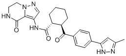 SMILES: | O=C([C@H]1[C@H](C(C2=CC=C(C3=NNC(C)=C3)C=C2)=O)CCCC1)NC4=C(N(N=C4)CCN5)C5=O |