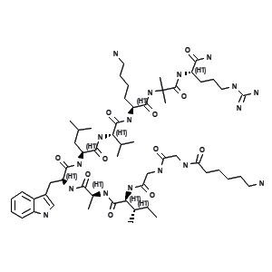 SMILES: | NCCCCCC(NCC(NCC(N[C@@H]([C@@H](C)CC)C(N[C@@H](C)C(N[C@@H](CC1C2=CC=CC=C2NC=1)C(N[C@@H](CC(C)C)C(N[C@@H](C(C)C)C(N[C@@H](CCCCN)C(NC(C)(C)C(N[C@@H](CCCNC(N)=N)C(N)=O)=O)=O)=O)=O)=O)=O)=O)=O)=O)=O |