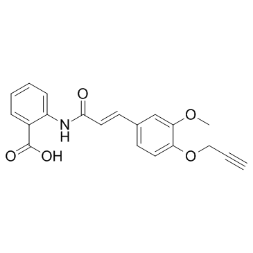 Chemical Name: | Benzoic acid, 2-[[(2E)-3-[3-methoxy-4-(2-propyn-1-yloxy)phenyl]-1-oxo-2-propen-1-yl]amino]- |