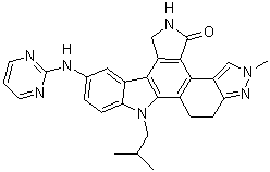 Synonyms: CHEMBL2010872;1.11-(2-METHYLPROPYL)-12,13-DIHYDRO-2-METHYL-8-(PYRIMIDIN-2-YLAMINO)-4H-INDAZOLO(5,4-A)PYRROLO(3,4-C)CARBAZOL-4-ONE;CEP-11981