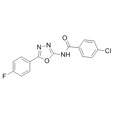 SMILES: | O=C(C1C=CC(Cl)=CC=1)NC1OC(C2C=CC(F)=CC=2)=NN=1 |