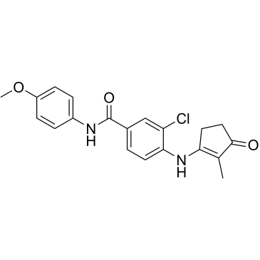 Chemical Name: | 3-chloro-N-(4-methoxyphenyl)-4-((2-methyl-3-oxocyclopent-1-en-1-yl)amino)benzamide |