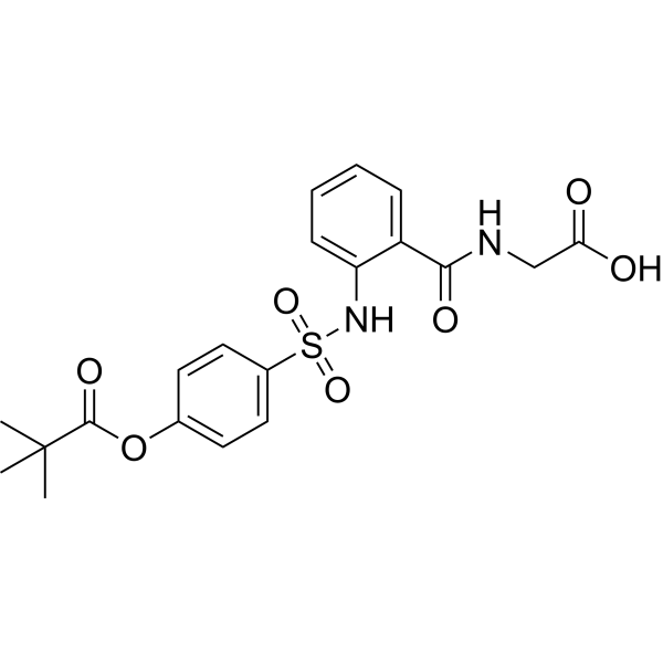 SMILES: | CC(C)(C)C(OC1=CC=C(S(=O)(NC2=CC=CC=C2C(NCC(O)=O)=O)=O)C=C1)=O |