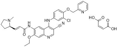 Chemical Name: | (R,E)-N-(4-((3-chloro-4-(pyridin-2-ylmethoxy)phenyl)amino)-3-cyano-7-ethoxyquinolin-6-yl)-3-(1-methylpyrrolidin-2-yl)acrylamide dimaleate |