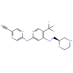 Chemical Name: | 2-Pyrazinecarbonitrile, 5-[[4-[[(2R)-2-morpholinylmethyl]amino]-5-(trifluoromethyl)-2-pyridinyl]amino]- |