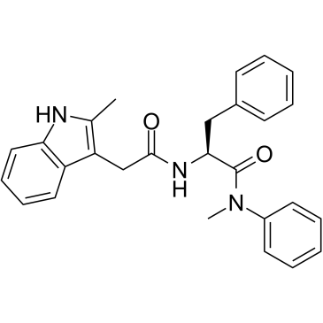 SMILES: | O=C(N[C@@H](CC1=CC=CC=C1)C(N(C)C2=CC=CC=C2)=O)CC3=C(C)NC4=C3C=CC=C4 |