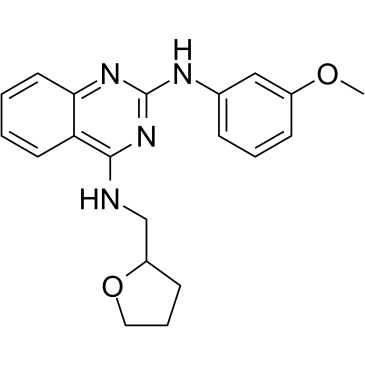 LCH-7749944 (GNF-PF-2356; 5-50 μM; 24 hours) inhibits the proliferation of MKN-1, BGC823, SGC7901 and MGC803 cells in a concentration dependent manner[1]. LCH-7749944 (5-20 μM; 12-48 hours) induces apoptosis of SGC7901 cells[1]. LCH-7749944 (5-20 μM; 12-48 hours) prominently induces a dose-dependent increase in the percentage of cells in G1 phase and decrease in S phase[1]. LCH-7749944 (5-30 μM; 24 hours) dramatically decreases levels of phosphoPAK4, phospho-c-Src, phospho-EGFR and cyclin D1 protein expression in a dose-dependent manner[1]. Cell Proliferation Assay[1] Cell Line: MKN-1, BGC823, SGC7901 and MGC803 human gastric cancer cells Concentration: 5, 10, 15, 20, 25, 30, 35, 40, 45, 50 μM Incubation Time: 24 hours Result: Inhibited the proliferation of MKN-1, BGC823, SGC7901 and MGC803 cells in a concentration dependent manner. Apoptosis Analysis[1] Cell Line: SGC7901 cells Concentration: 5, 10, 20 μM Incubation Time: 12, 24, 48 hours Result: Induced apoptosis of SGC7901 cells. Cell Cycle Analysis[1] Cell Line: SGC7901 cells Concentration: 5, 10, 20 μM Incubation Time: 12, 24, 48 hours Result: Prominently induced a dose-dependent increase in the percentage of cells in G1 phase and decrease in S phase. Western Blot Analysis[1] Cell Line: SGC7901 cells Concentration: 5, 10, 20, 30 μM Incubation Time: 24 hours Result: Dramatically decreased levels of phosphoPAK4, phospho-c-Src, phospho-EGFR and cyclin D1 protein expression in a dose-dependent manner. |