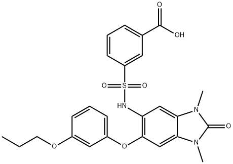 Chemical Name: | 3-(N-(1,3-dimethyl-2-oxo-6-(3-propoxyphenoxy)-2,3-dihydro-1H-benzo[d]imidazol-5-yl)sulfamoyl)benzoic acid |