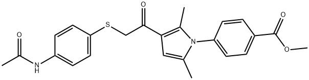 Chemical Name: | Methyl 4-[3-[2-(4-acetamidophenyl)sulfanylacetyl]-2,5-dimethylpyrrol-1-yl]benzoate |