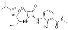 Synonyms: (R)-2-Hydroxy-3-((2-((1-(4-isopropylfuran-2-yl)propyl)amino)-3,4-dioxocyclobut-1-en-1-yl)amino)-N,N-dimethylbenzamide;3-[[3,4-dioxo-2-[[(1R)-1-(4-propan-2-ylfuran-2-yl)propyl]amino]cyclobuten-1-yl]amino]-2-hydroxy-N,N-dimethylbenzamide;3-[[3-[(Dimethylamino)carbonyl]-2-hydroxyphenyl]amino]-4-[[(R)-1-(4-isopropylfuran-2-yl)propyl]amino]cyclobut-3-ene-1,2-dione;SCH 563705;CS-0833;SCH-563705