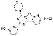 SMILES: | Cl.O1CCN(C2=C3C(C4=CC=CN=C4O3)=NC(C3C=CC=C(C=3)O)=N2)CC1 |