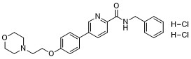 SMILES: | O=C(CC1=NC=C(C2=CC=C(OCCN3CCOCC3)C=C2)C=C1)NCC4=CC=CC=C4.Cl.Cl |