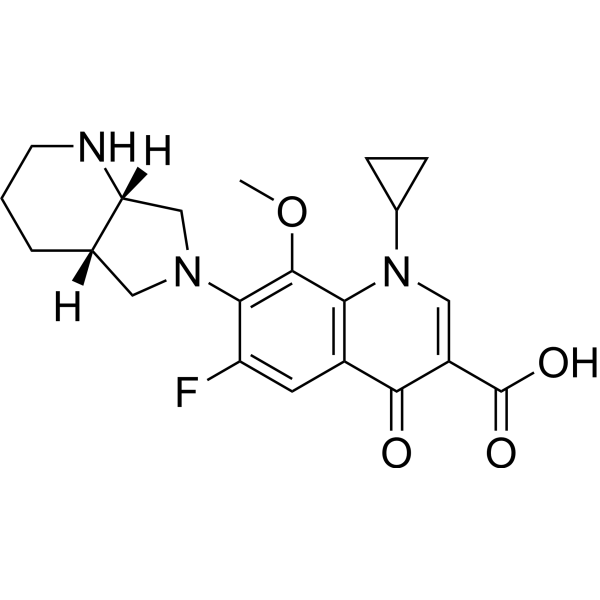 Description: | A fourth-generation synthetic fluoroquinolone, broad-spectrum antibacterial agent that is active against both Gram-positive and Gram-negative bacteria; inhibits DNA gyrase and topoisomerase IV.Bacterial InfectionApproved |