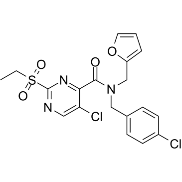 Chemical Name: | 5-Chloro-N-(4-chlorobenzyl)-2-(ethylsulfonyl)-N-(furan-2-ylmethyl)pyrimidine-4-carboxamide |