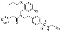 SMILES: ClC1C=CC(=C(C=1)CN(C(CC1=CSC=C1)=O)CCC1C=CC(=CC=1)S(NCC#C)(=O)=O)OCCC