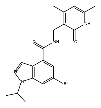 | Chemical Name: | 1H-Indazole-4-carboxamide, 6-bromo-N-[(1,2-dihydro-4,6-dimethyl-2-oxo-3-pyridinyl)methyl]-1-(1-methylethyl)- |