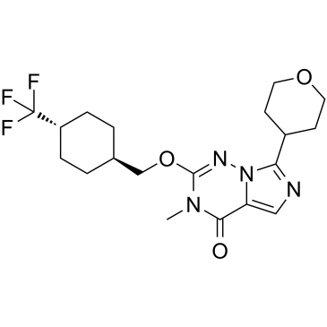SMILES: | O=C1N(C)C(OC[C@H]2CC[C@H](C(F)(F)F)CC2)=NN3C1=CN=C3C4CCOCC4 |