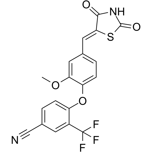 SMILES: | C(#N)C1=CC=C(OC2=CC=C(/C=C3\SC(=O)NC\3=O)C=C2OC)C(C(F)(F)F)=C1 |