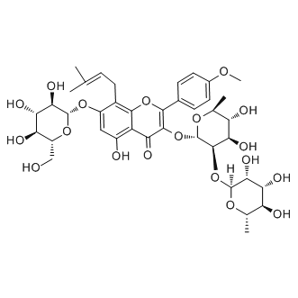 SMILES: | O[C@H]1[C@H](O)[C@@H](CO)O[C@@H](OC2=CC(O)=C(C(C(O[C@H]3[C@H](O[C@]4([H])O[C@@H](C)[C@H](O)[C@@H](O)[C@H]4O)[C@H](O)[C@@H](O)[C@H](C)O3)=C(C5=CC=C(OC)C=C5)O6)=O)C6=C2C/C=C(C)/C)[C@@H]1O |