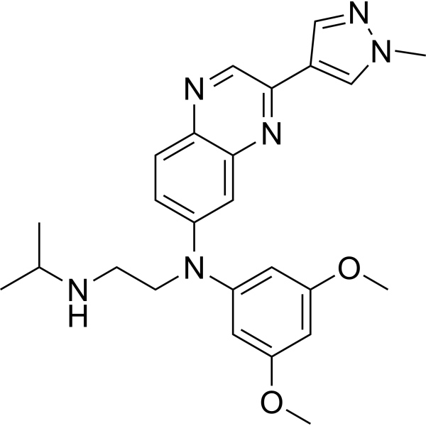 | Description: | Erdafitinib (JNJ-42756493) is a potent and orally available FGFR family inhibitor; inhibits FGFR1/2/3/4 with IC50s of 1.2, 2.5, 3.0 and 5.7 nM, respectively. |