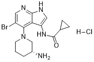 SMILES: | O=C(C1CC1)NC2=CNC3=NC=C(Br)C(N4C[C@H](N)CCC4)=C32.[H]Cl |