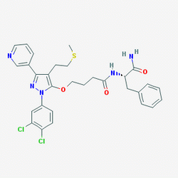 Chemical Name: | N-[(2S)-1-amino-1-oxo-3-phenylpropan-2-yl]-4-[2-(3,4-dichlorophenyl)-4-(2-methylsulfanylethyl)-5-pyridin-3-ylpyrazol-3-yl]oxybutanamide |