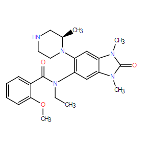SMILES: | O=C(N(CC)C1=C(N2[C@H](C)CNCC2)C=C(N3C)C(N(C)C3=O)=C1)C4=CC=CC=C4OC |
