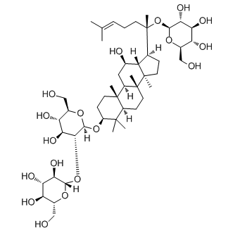 SMILES: | C[C@@]([C@@](CC1)(C)[C@@]2([H])[C@H]1[C@@](CC/C=C(C)/C)(C)O[C@@H]3O[C@H](CO)[C@@H](O)[C@H](O)[C@H]3O)(C[C@@H]4O[C@H](O[C@@H]5CO)[C@@H]([C@@H](O)[C@@H]5O)O[C@@H]6O[C@H](CO)[C@@H](O)[C@H](O)[C@H]6O)[C@@](C[C@H]2O)([H])[C@]7(C)[C@]4([H])C(C)(C)[C@@H](O)CC7 |