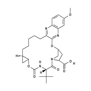 mk-5172;(1aR,5S,8S,10R,22aR)-5-tert-butyl-14-methoxy-3,6-dioxo-1,1a,3,4,5,6,9,10,18,19,20,21,22,22a-tetradecahydro-8H-7,10-methanocyclopropa[18,19][1,10,3,6]dioxadiazacyclononadecino[11,12-b]quinoxaline-8-car;MK5172;MK-5172 Intermediate 2;UNII-RU4QU6O6X6;(1aR,5S,8S,10R,22aR)-5-(1,1-Dimethylethyl)-1,1a,3,4,5,6,9,10,18,19,20,21,22,22a-tetradecahydro-14-methoxy-3,6-dioxo-8H-7,10-methanocyclopropa[18,19][1,10,3,6]dioxadiazacyclononadecino[11,12-b]quinoxaline-8-carboxylic acid;MK5172 intermidiate;BCP02031;(18R,24S)-24-Tert-butyl-7-methoxy-22,25-dioxo-2,21-dioxa-4,11,23,26-tetrazapentacyclo[24.2.1.03,12.0;5-(1,1-Dimethylethyl)-1,1a,3,4,5,6,9,10,18,19,20,21,22,22a-tetradecahydro-14-methoxy-3,6-dioxo-8H-7,10-methanocyclopropa(18,19)(1,10,3,6)dioxadiazacyclononadecino(11,12-b)quinoxaline-8-carboxylic acid, (1aR,5S,8S,10R,22aR)-;RU4QU6O6X6;8H-7,10-Methanocyclopropa[18,19][1,10,3,6]dioxadiazacyclononadecino[11,12-b]quinoxaline-8-carboxylicacid,5-(1,1-dimethylethyl)-1,1a,3,4,5,6,9,10,18,19,20,21,22,22a-tetradecahydro-14-methoxy-3,6-dioxo-,(1aR,5S,8S,10R,22aR)-;DTXSID20152954;(1aR,5S,8S,10R,22aR)-5-tert-butyl-14-methoxy-3,6-dioxo-1,1a,3,4,5,6,9,10,18,19,20,21,22,22a-tetradecahydro-8H-7,10-methanocyclopropa[18,19][1,10,3,6]dioxadiazacyclononadecino[11,12-b]quinoxaline-8-carboxylic acid;Q27288294;8H-7,10-Methanocyclopropa[18,19][1,10,3,6]dioxadiazacyclononadecino[11,12-b]quinoxaline-8-carboxylic acid, 5-(1,1-dimethylethyl)-1,1a,3,4,5,6,9,10,18,19,20,21,22,22a-tetradecahydro-14-methoxy-3,6-dioxo-, (1aR,5S,8S,10R,22aR)-;1206524-85-7;IVROMYPOGKZNLP-FDOFPDFBSA-N;(1ar,5S,8S,10R,22ar)-5-(1,1-dimethylethyl)-1,1a,3,4,5,6,9,10,18,19,20,21,22,22a-tetradecahydro-14-methoxy-3,6-dioxo-8H-7,10-methanocyclopropa(18,19)(1,10,3,6)dioxadiazacyclononadecino(11,12-b)quinoxaline-8-carboxylic acid;(1aR,5S,8S,10R22aR)-5-tert-butyl-14-methoxy-3,6-dioxo-1,1a,3,4,5,6,9,10,18,19,20,21,22,22a-tetradecahydro-8H-7,10-methanocyclopropa[18,19][1,10,3,6]dioxadiazacyclononadecino[11,12-b]quinoxaline-8-carboxylic acid;(1R,18R,20R,24S,27S)-24-tert-butyl-7-methoxy-22,25-dioxo-2,21-dioxa-4,11,23,26-tetrazapentacyclo[24.2.1.03,12.05,10.018,20]nonacosa-3,5(10),6,8,11-pentaene-27-carboxylic acid;CS-M2339;SCHEMBL2174641;AKOS025396422;(1R,18R,20R,24S,27S)-24-tert-butyl-7-methoxy-22,25-dioxo-2,21-dioxa-4,11,23,26-tetrazapentacyclo[24.2.1.0{3,12.0{5,10.0{18,20]nonacosa-3,5(10),6,8,11-pentaene-27-carboxylic acid;8H-7,10-Methanocyclopropa(18,19)(1,10,3,6)dioxadiazacyclononadecino(11,12-b)quinoxaline-8-carboxylic acid, 5-(1,1-dimethylethyl)-1,1a,3,4,5,6,9,10,18,19,20,21,22,22a-tetradecahydro-14-methoxy-3,6-dioxo-, (1aR,5S,8S,10R,22aR)- |