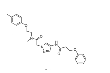 SMILES: | CC1=CC=C(OCCN(C(CN2N=CC(NC(=O)CCOC3=CC=CC=C3)=C2)=O)C)C=C1 |
